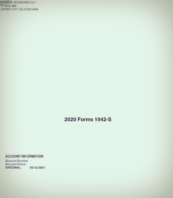 이트레이드에서 뜬금없는 알람이 와서 보니 1042-S Recipient 가 나왔고 뭔지 몰라 놀랬다. 배당소득이 나오긴 하는데 메일에 나오는 금액보다 적게 통장에 들어와 이상하다 했는데.. 나중에 보니 In