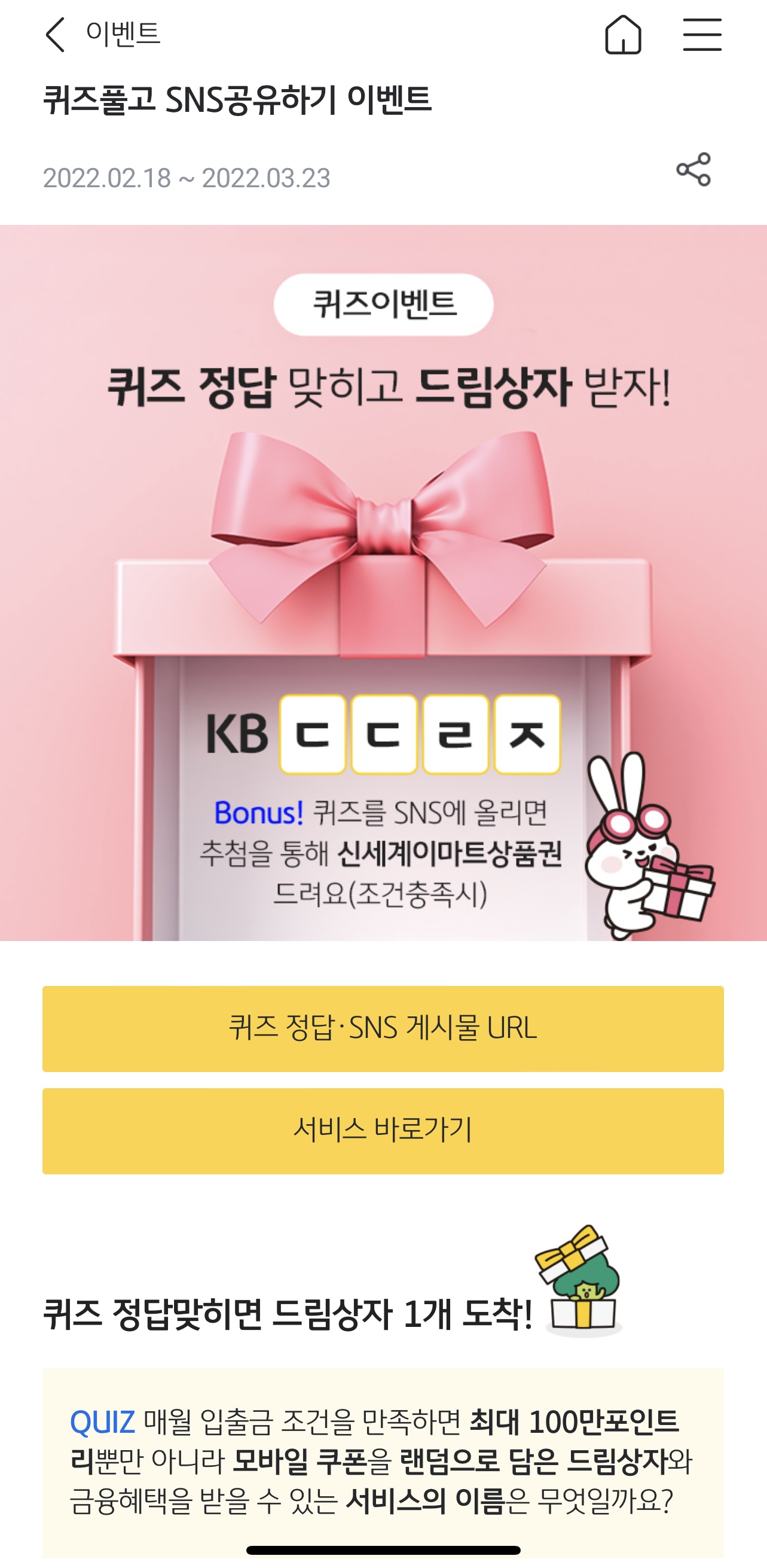 KB국민은행 이벤트를 소개합니다.퀴즈풀고 SNS공유하기 이벤트