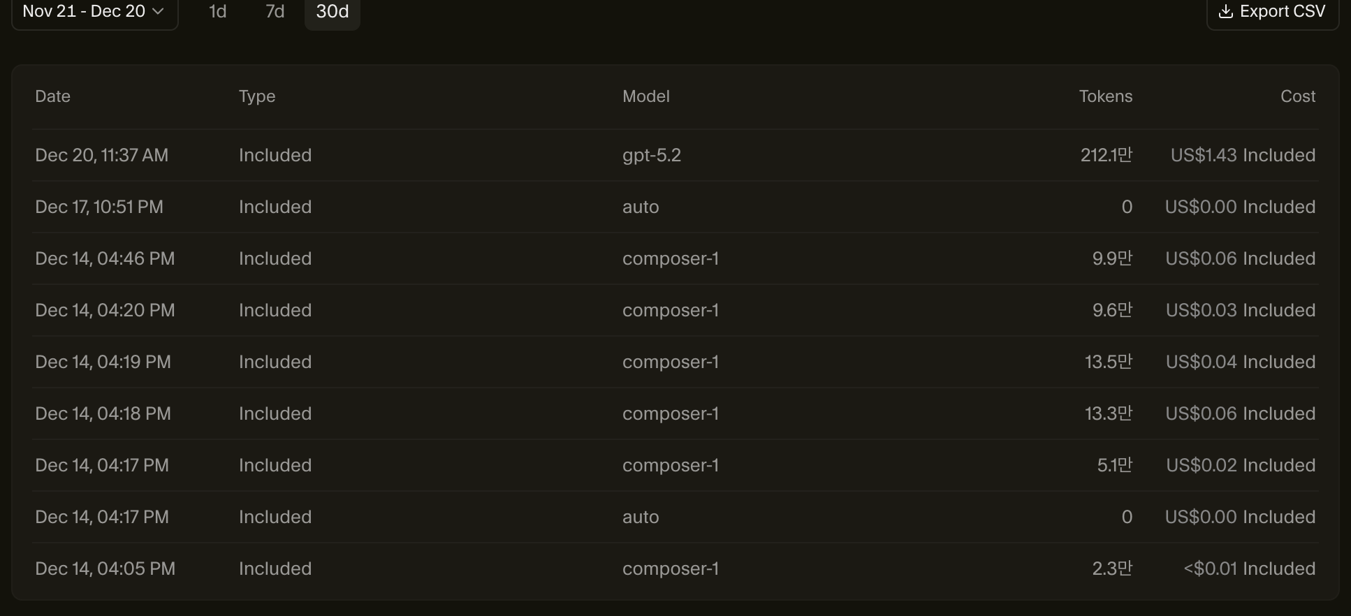 하지만 초보자는 월 $20의 크레딧도 사용하지 못할 가능성이 높습니다. 간단한 자동완성과 기본 코드 생성으로 대부분의 학습 목표를 달성할 수 있기 때문입니다.