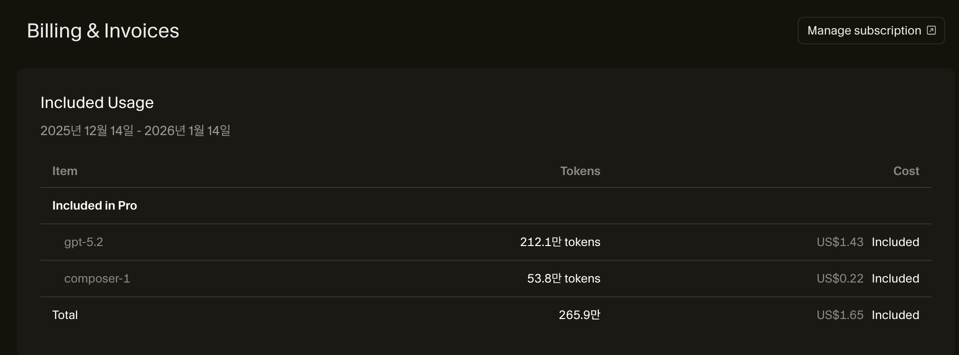 Cursor는 최근 요청 건수 대신 토큰 사용량 기반 요금제로 변경했습니다. 따라서:cursor+1